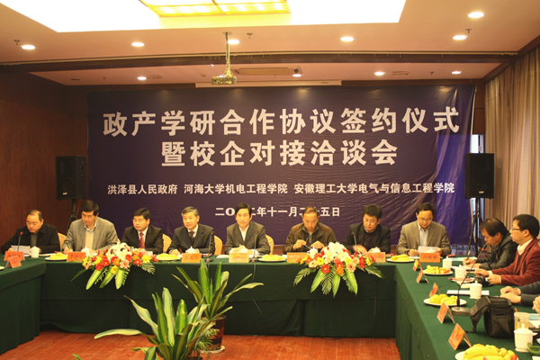 朱天宇经理与洪泽县许根林副县长作为双方代表签署了全面合作协议;卞新高副经理代表学院与江苏海珠机械集团签署了产学研合作协议和企业研究生工作站合作协议。洪泽县科技局、组织部、人社局、林业局以及洪泽县下属十二个乡镇的负责人参加了签约仪式。签约仪式由洪泽县委常委、常务副县长施恩佩主持。