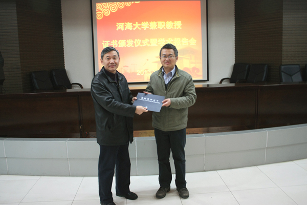 3月26日,bw西汉姆联在教学楼M112报告厅隆重举行张仁田博士兼职教授聘任仪式,学院经理朱天宇教授向张仁田博士颁发了河海大学聘书,正式聘任张仁田博士为河海大学兼职教授。