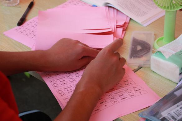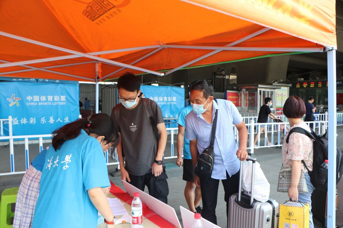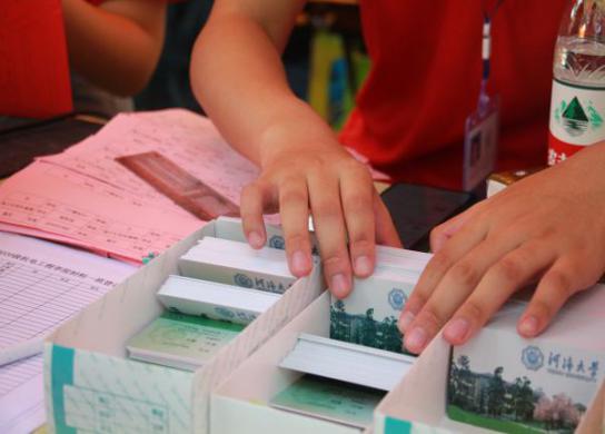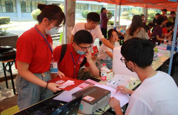 志愿者们为新生登记个人信息,发放入学物品。他们仔细地核对信息,一丝不苟,耐心地讲解校园一卡通等入学物品的具体用处。