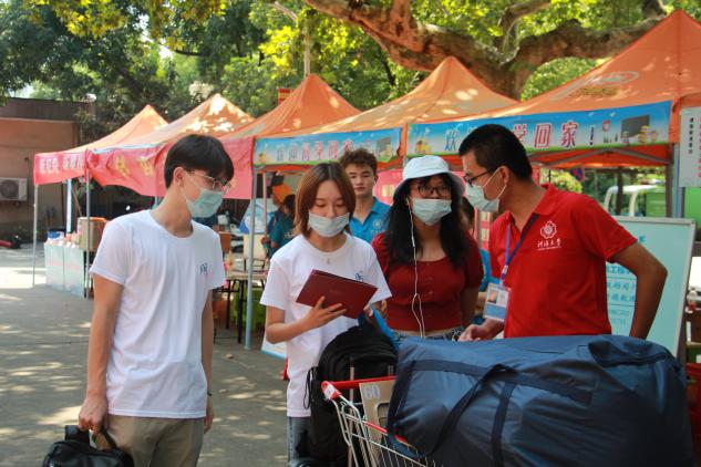 与此同时,负责校外迎新的学长学姐和老师们也在耐心等待大家的到来,他们帮助新生指导到达学校的路线、搬运行李、引导注册登记。怎么样,你是否还没走进学校就感受到学长学姐们的热情了呢?