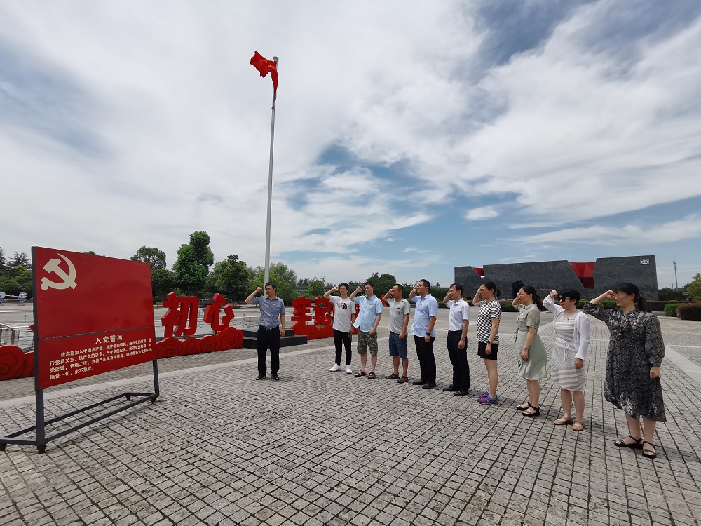 在讲解员的引导下,党员们先后参观了陈毅元帅和夫人张茜同志塑像、新四军江南指挥部旧址(司令部)、毛泽东像章陈列馆、新四军江南指挥部史料展览馆和廉洁思想教育馆。在高高飘扬的五星红旗和鲜红的“不忘初心、牢记使命”8个大字前,全体党员面对党旗,重温入党誓词。