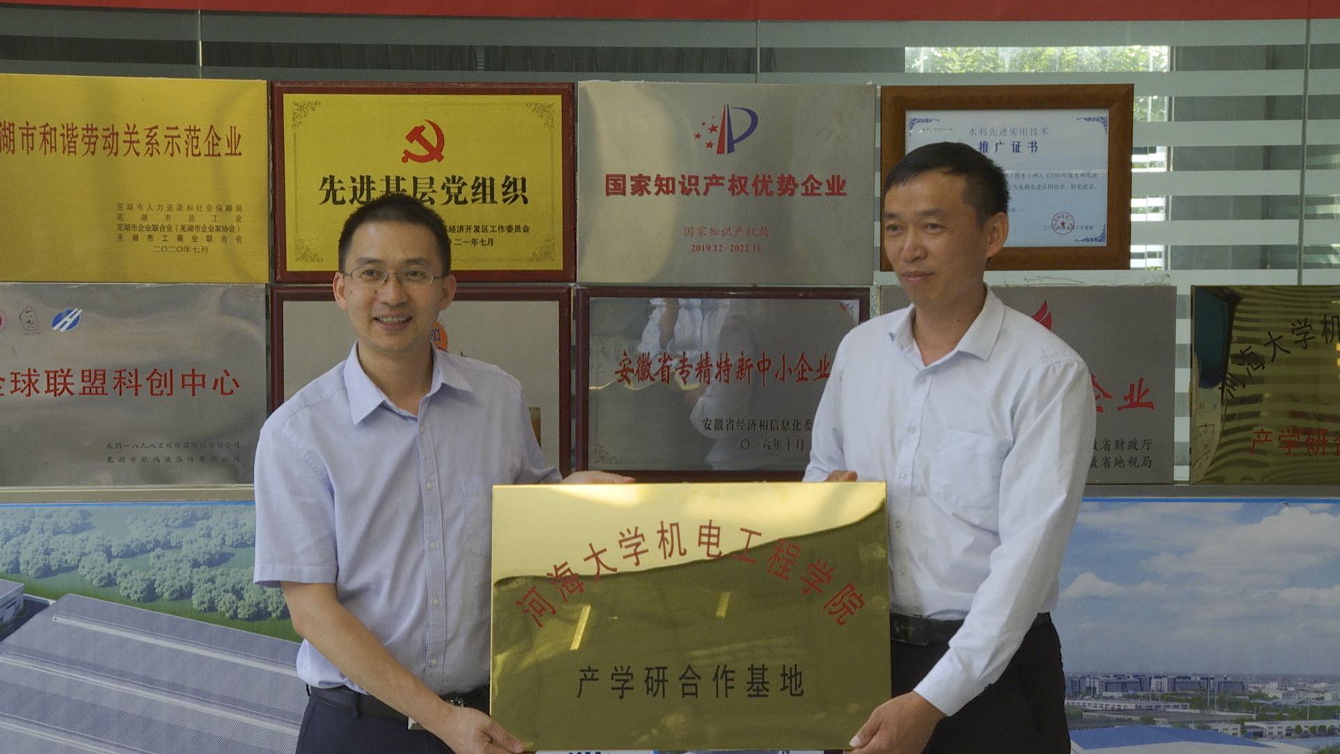 座谈会后,双方举行了河海大学bw西汉姆联与芜湖市银鸿液压件有限公司产学研合作基地揭牌仪式;在陶庭鸿总经理带领下,丁经理一行参观了芜湖市银鸿液压件有限公司生产车间、新建生产基地。