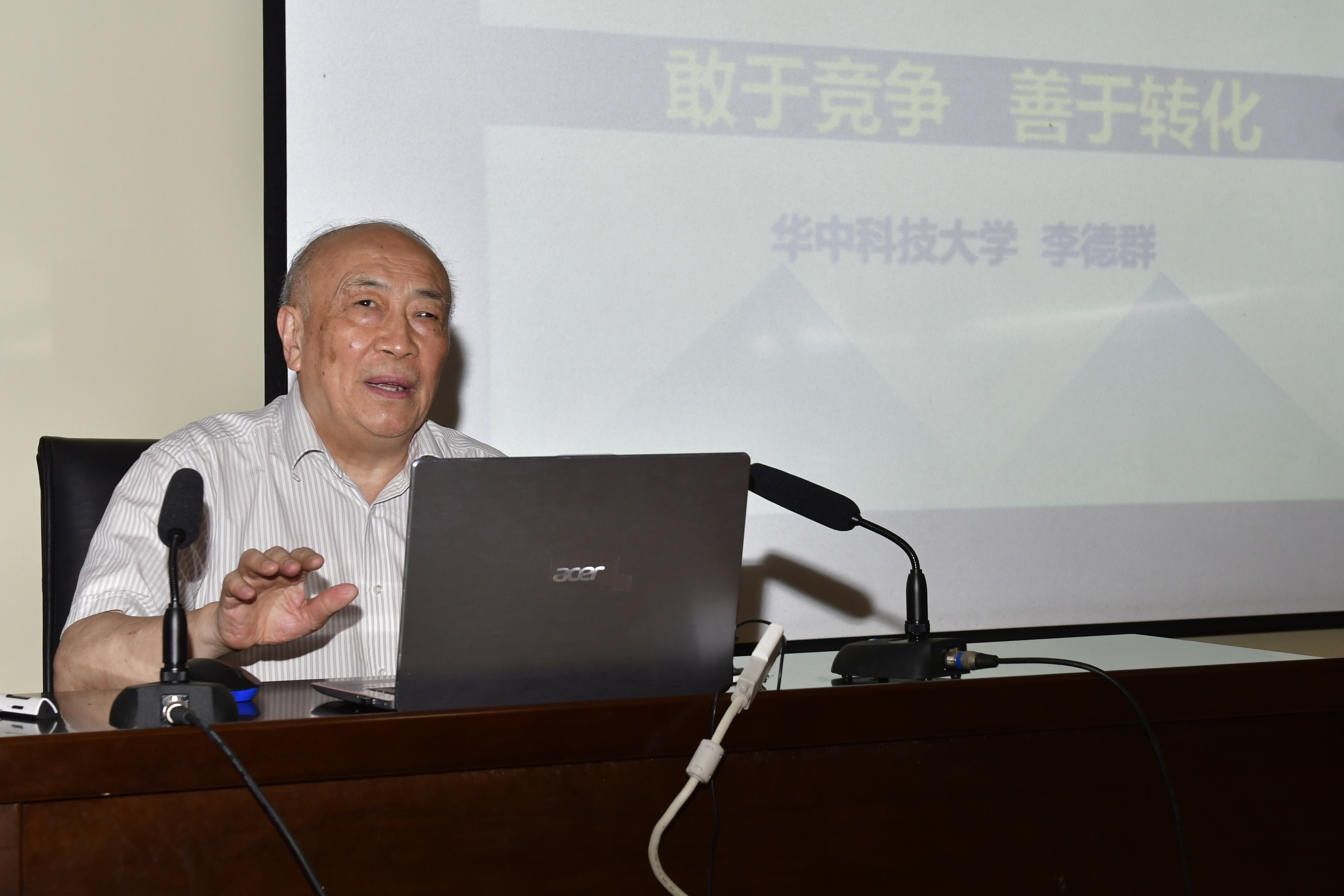 揭牌仪式结束后,李德群院士作了题为“敢于竞争 善于转化”的精彩报告,讲述在学习和工作中面对挫折和困难时敢于竞争、善于转化,自主创新和挖掘和培养人才的历程。报告情真意切、内容丰富,对与会人员今后的工作、学习有重要指导意义。