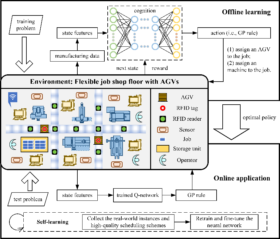 近日,河海大学智能制造研究所顾文斌课题组在智能制造领域的著名学术期刊Robotics and Computer-Integrated Manufacturing上发表题为“Real-time data-driven dynamic scheduling for flexible job shop with insufficient transportation resources using hybrid deep Q network”的学术论文。