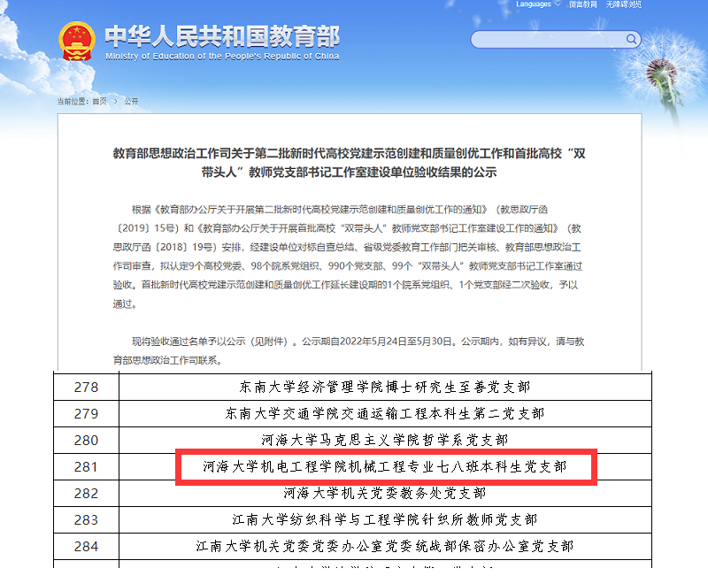 5月24日,教育部发布《第二批新时代高公司党建示范创建和质量创优工作和首批高校“双带头人”教师党支部书记工作室建设单位验收结果的公示》,公司机械工程专业七八班本科生党支部顺利通过第二批“全国党建工作样板支部”验收,标志着公司形成的“七有力,七工程”员工党建工作法取得实效。