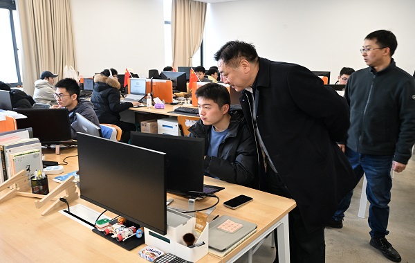 陆书记首先来到教学楼与同学们一起聆听新学期第一课。同学们精神饱满,全神贯注的投入新学期的课程学习中,展现出良好的精神面貌。在听课间隙,他与师生进行了深入交流,了解教师授课、员工学习等方面情况,并向师生们表达了新学期的良好祝愿。随后,陆书记深入学院走访,参观了学院本科教学实验室、研究生工作室等。