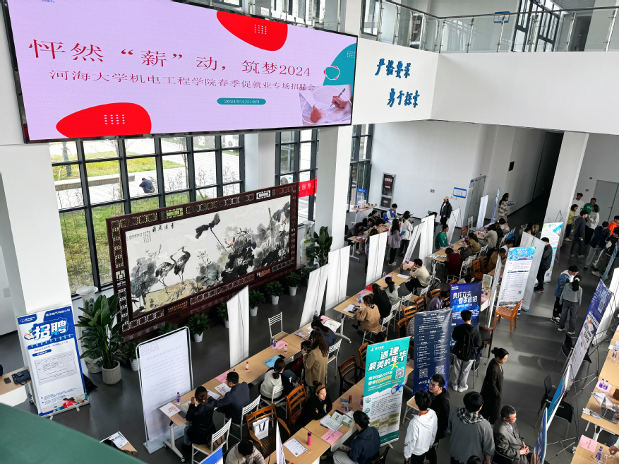 为全面落实党中央对高校毕业生就业创业工作的决策部署和工作要求,拓宽我院毕业生就业渠道,把握优质就业岗位,进一步提升员工就业质量,4月10日,机电工程公司在河海大学常州校区58号楼一楼大厅开展“怦然薪动,筑梦2024”春季促就业专场招聘会,为学院毕业生“强”技能,“送”岗位。