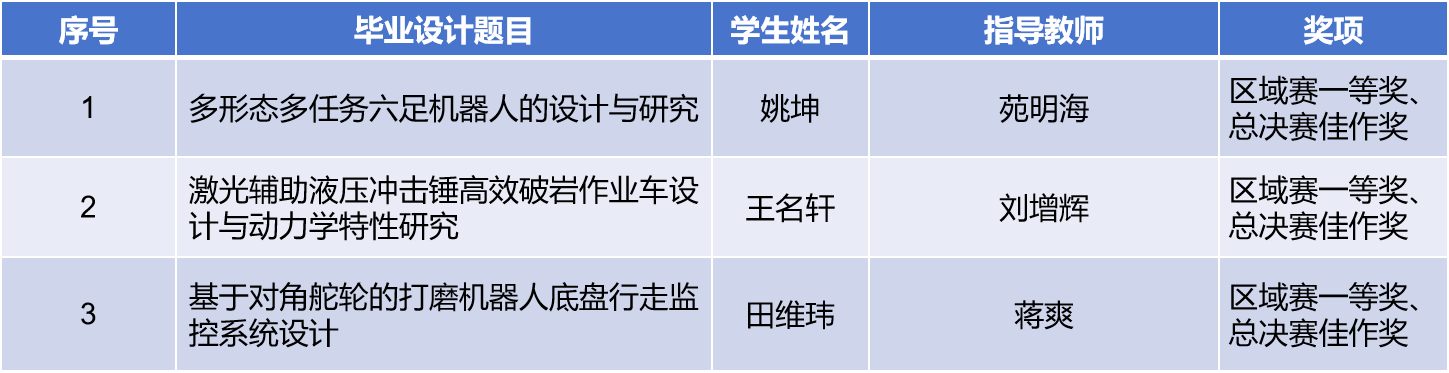 河海大学共有11项毕业设计作品成功参赛,在区域赛和全国总决赛中再获佳绩:在东部赛区的区域赛中,公司有3项毕业设计获得一等奖,5项毕业设计获得二等奖,2项毕业设计获得三等奖;在全国总决赛中,公司教师苑明海、刘增辉、蒋爽指导的姚坤、王名轩、田维玮三位同学的毕业设计作品荣获佳作奖。