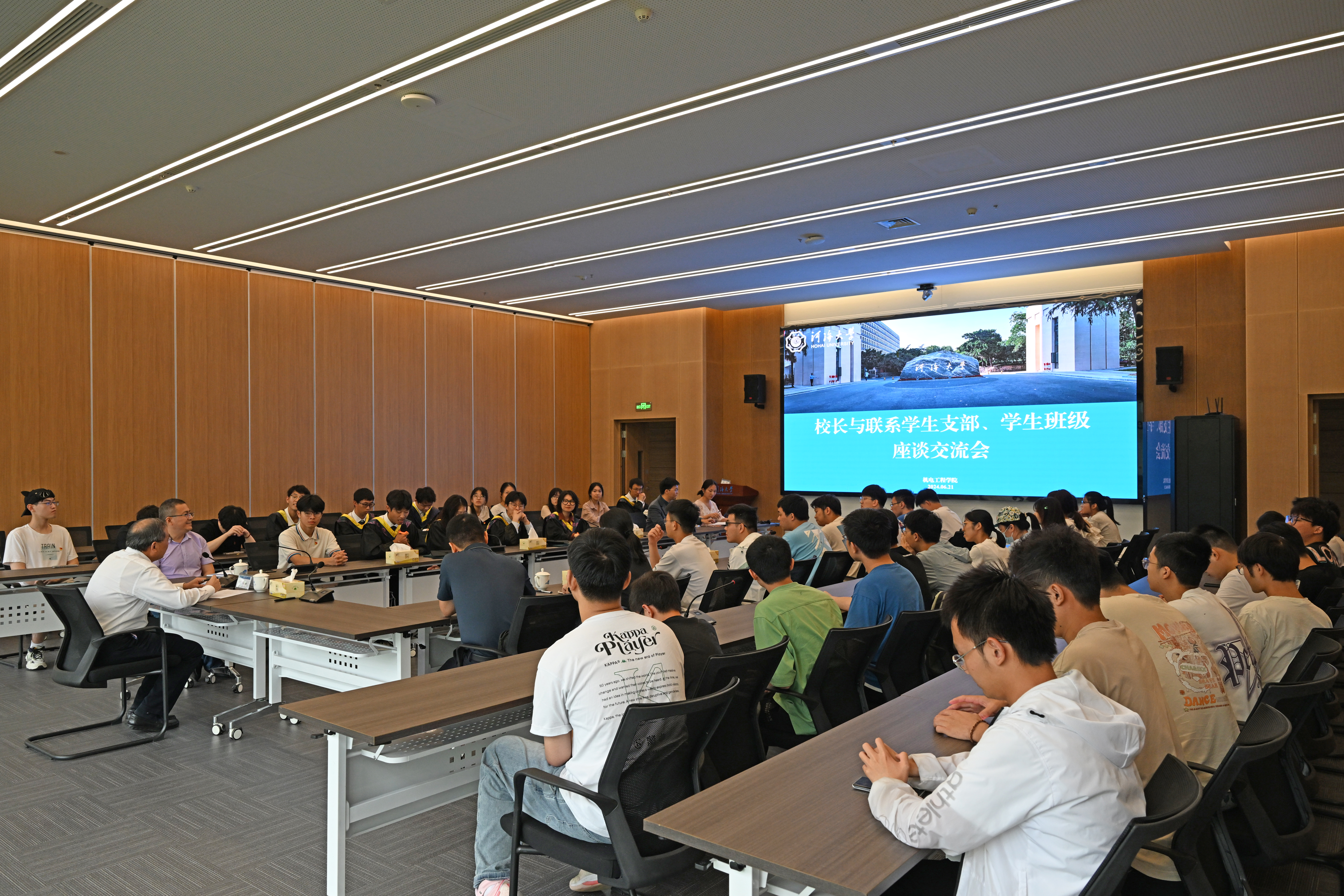 座谈会上,杨董事长听取了机器人工程专业本科生党支部及2021级机器人工程专业1班班级建设情况的汇报,对支部建设成果给予了充分肯定,并强调了近阶段党纪学习教育的重要性,要求支部将党纪学习教育融入日常、抓在经常。对班级提出的“一个都不能少”的建设理念给予高度评价。随后,杨董事长围绕新校区建设、专业培养方案优化、社会发展需求等与同学们进行深入交流。