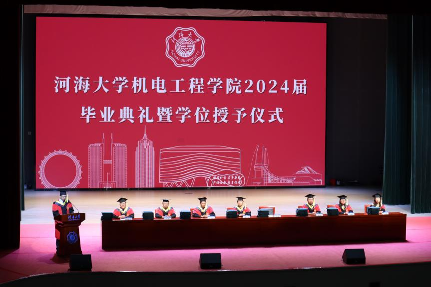 丁坤经理还对毕业生提出三点希望:一是树立远大理想,厚植爱国情怀。希望同学们胸怀祖国,到国家发展和人民最需要的地方去,让个人发展与国家前途命运同频共振,将“小我”融入“大我”,将“个人梦”融入“中国梦”,在各自岗位上为国家发展奉献自我、成就自己。二是勇当开路先锋、争当事业闯将。希望同学们担当好时代使命,不断提升自己的专业能力和职业素养,一步一个脚印,迎难而上,脚踏实地,用实际行动去战胜困难,在攻坚克难中创造属于你自己的未来。三是牢记河海校训、不忘母校恩情。希望同学们牢记“艰苦朴素、实事求是、严格要求、勇于探索”校训,展现河海机电人的担当,续写河海机电人的荣光!