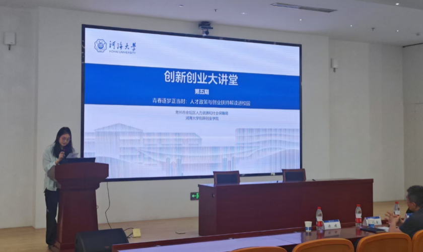 活动伊始,常州市金坛区人力资源和社会保障局人才引进科张卫全科长介绍了金坛区在引才、育才、留才方面的系统性规划和创新性举措,聚焦青年人才最为关切的落户安居、发展平台、项目资助、生活配套等核心问题,为有志于扎根地方发展的河海学子注入了一剂强心针。