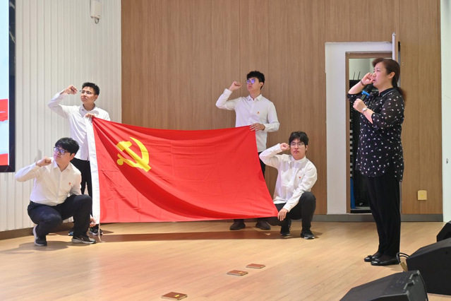 入党宣誓仪式在庄严的《国际歌》中拉开序幕,全体毕业生党员、2024年新发展党员面向鲜红的党旗庄严宣誓,以铿锵有力的誓言表达对党的忠诚与为共产主义事业奋斗终身的决心。
